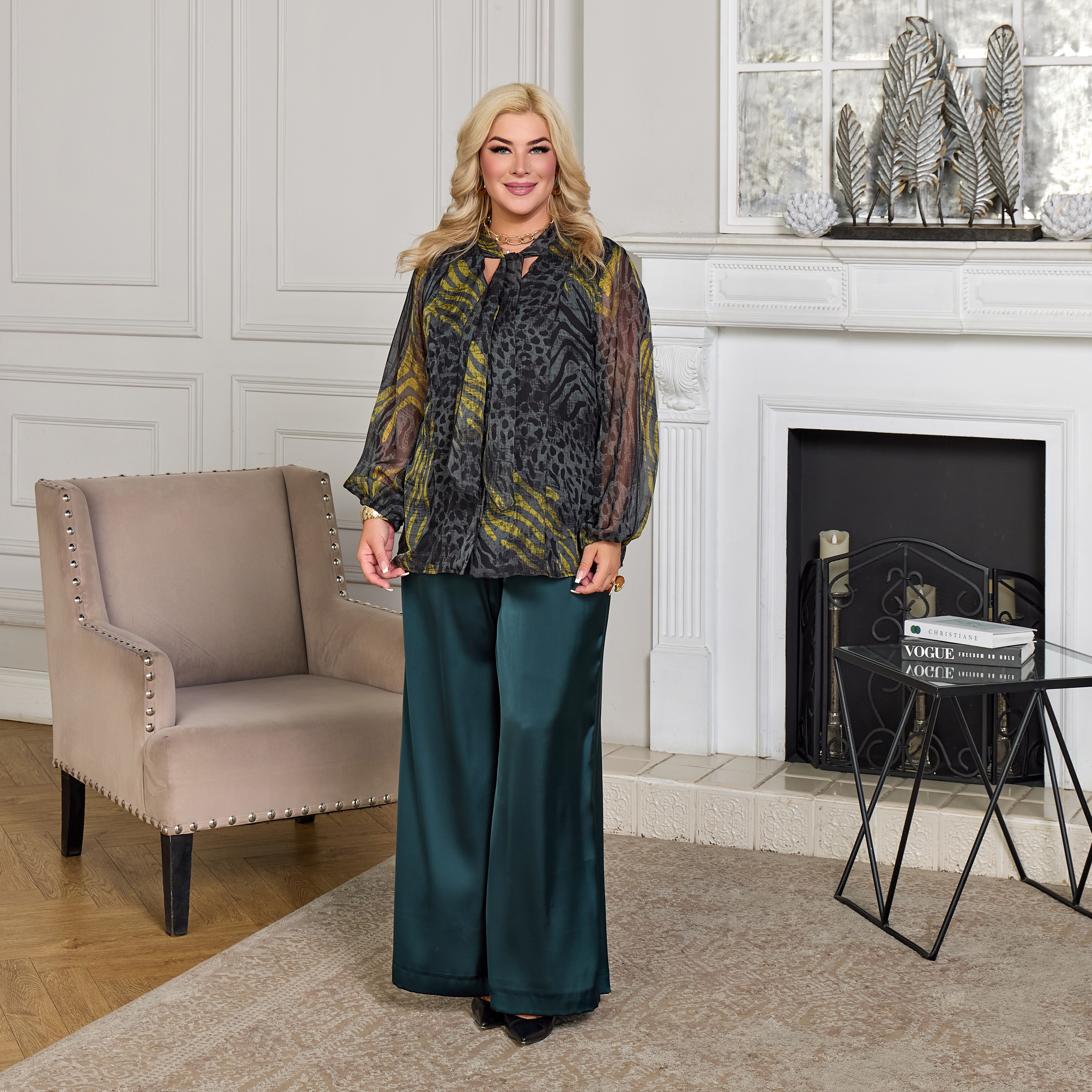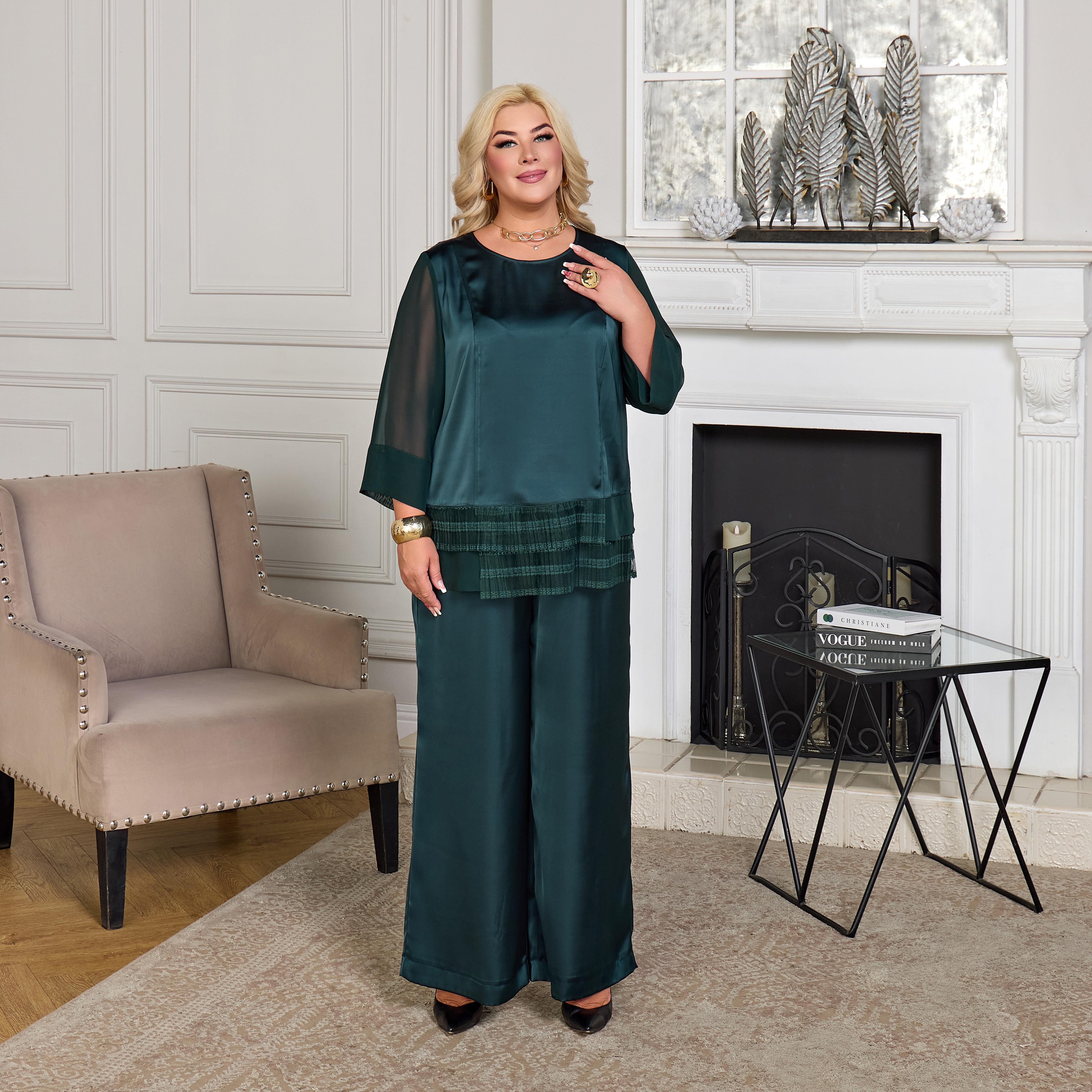 - Идеальный комплект: Полное совпадение цвета с изумрудной блузой.