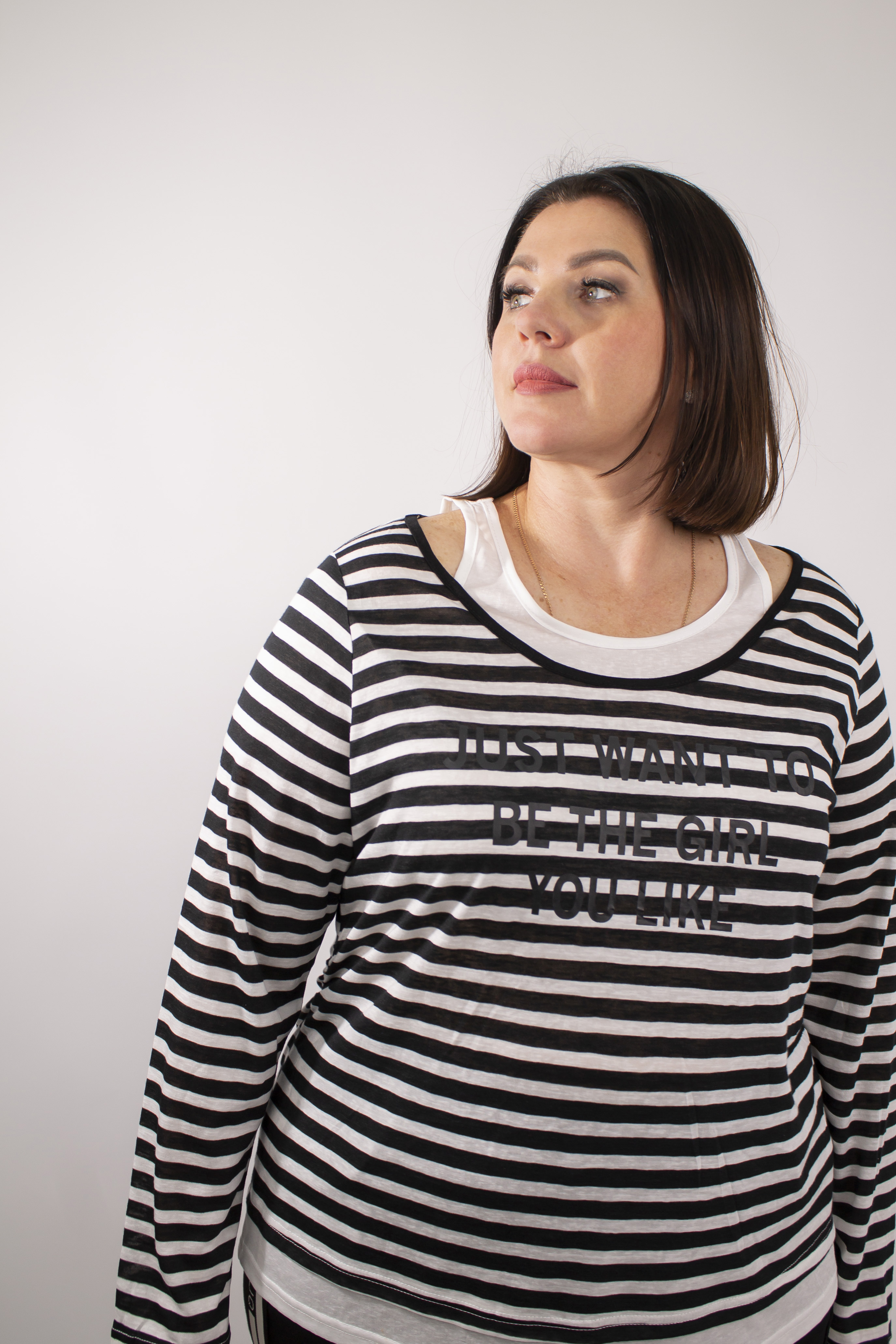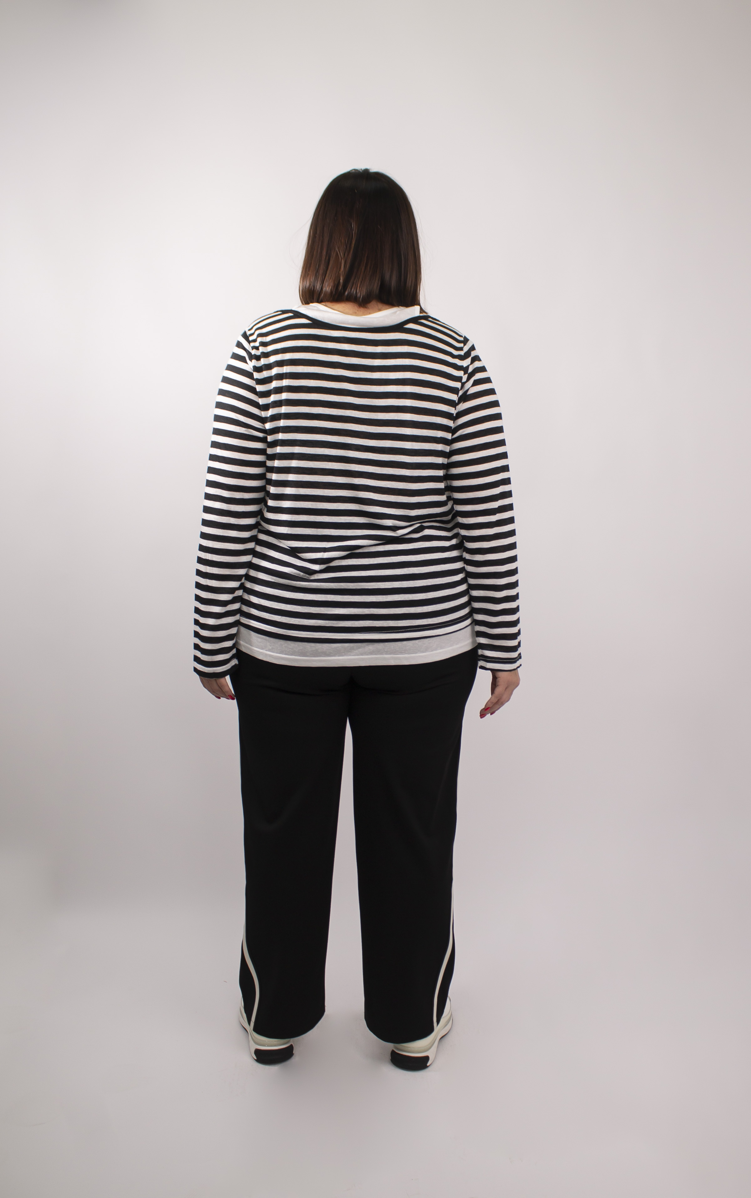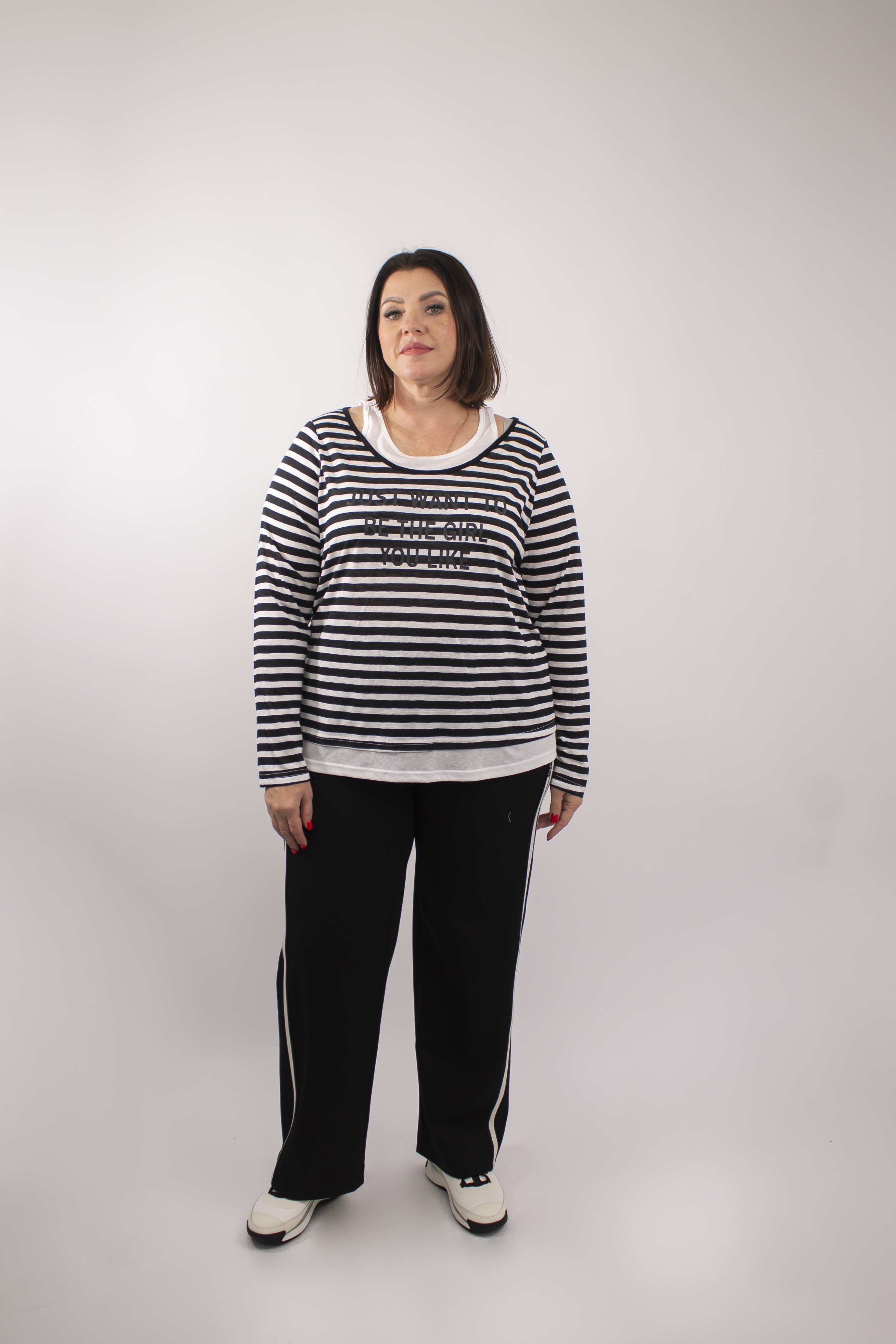 Элегантная полоска в сочетании с выразительной надписью на лицевой стороне делает лонгслив не только практичным, но и стильным. Он легко сочетается с джинсами, брюками, создавая множество стильных образов для работы, прогулок или встреч с друзьями.