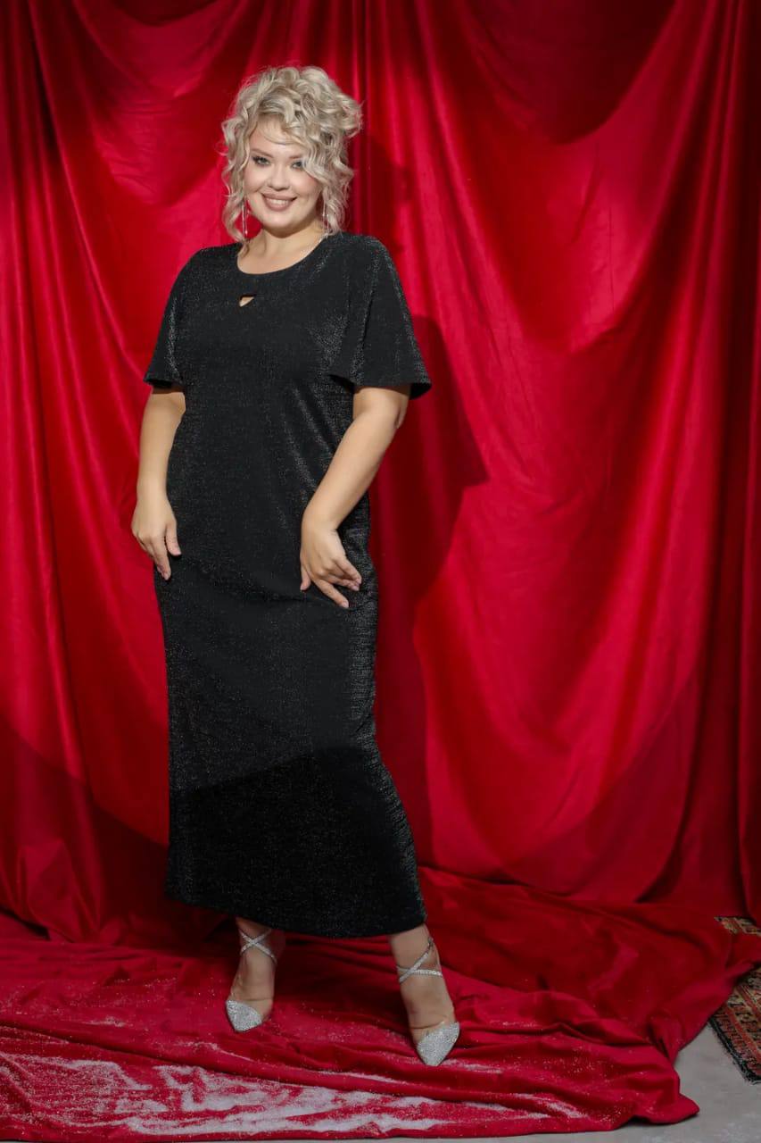 Эффектное вечернее платье в пол с элегантными рукавами до локтя и блестящей отделкой. Модель выполнена в глубоком черном цвете с мерцающим эффектом, который создает ощущение роскоши и торжественности. Платье специально разработано для женщин с формами, с продуманным кроем, который подчеркивает достоинства фигуры.