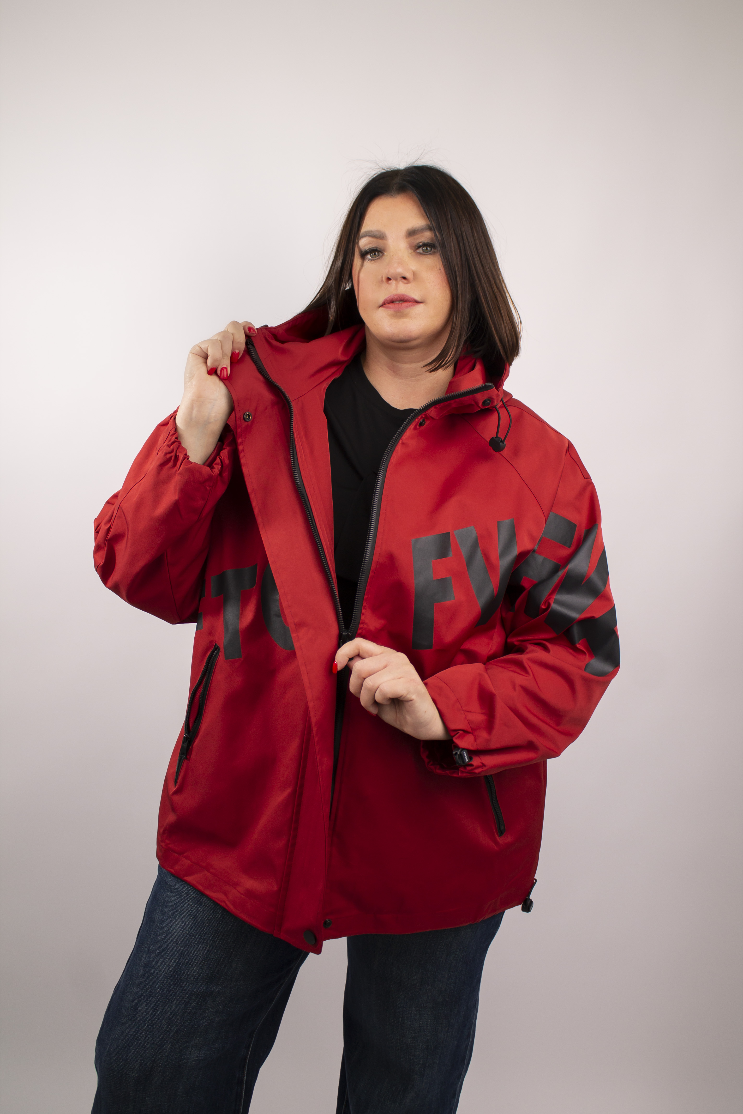 Ветровка выполнена на молнии и оснащена глубоким капюшоном, который надежно защитит от непогоды. Украшена стильной надписью, добавляющей яркости образу. Доступна в двух классических цветах: красном и черном.