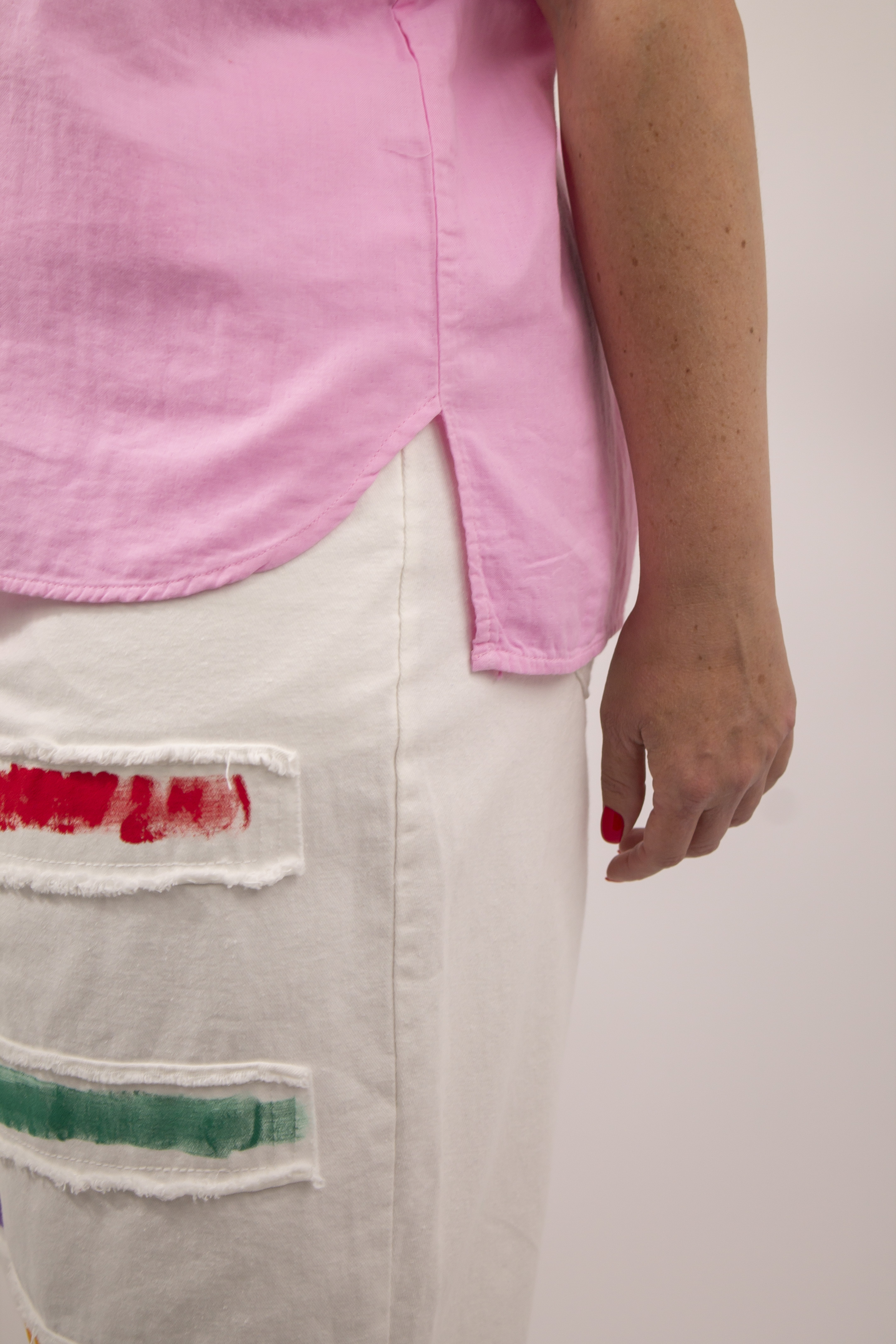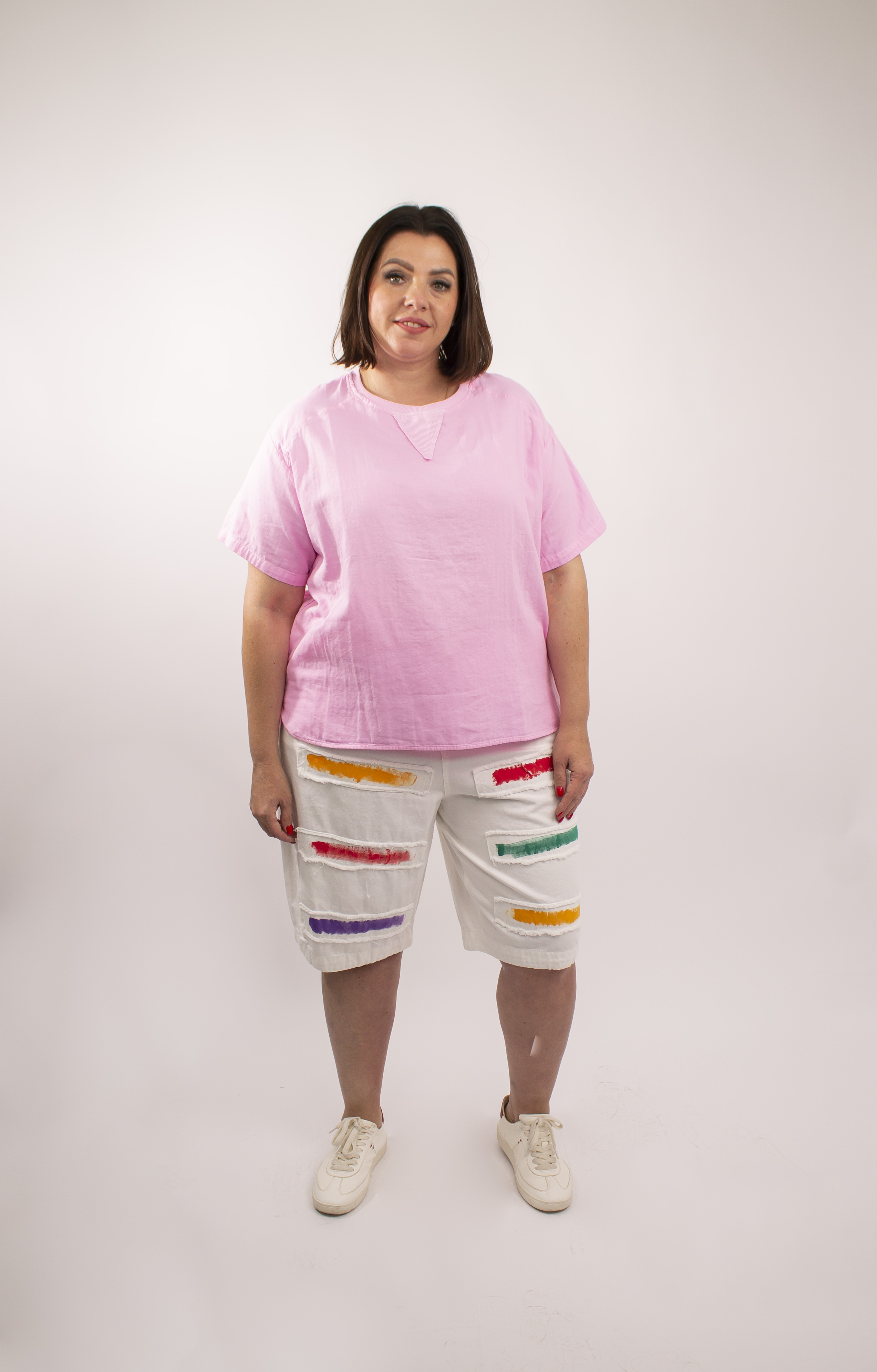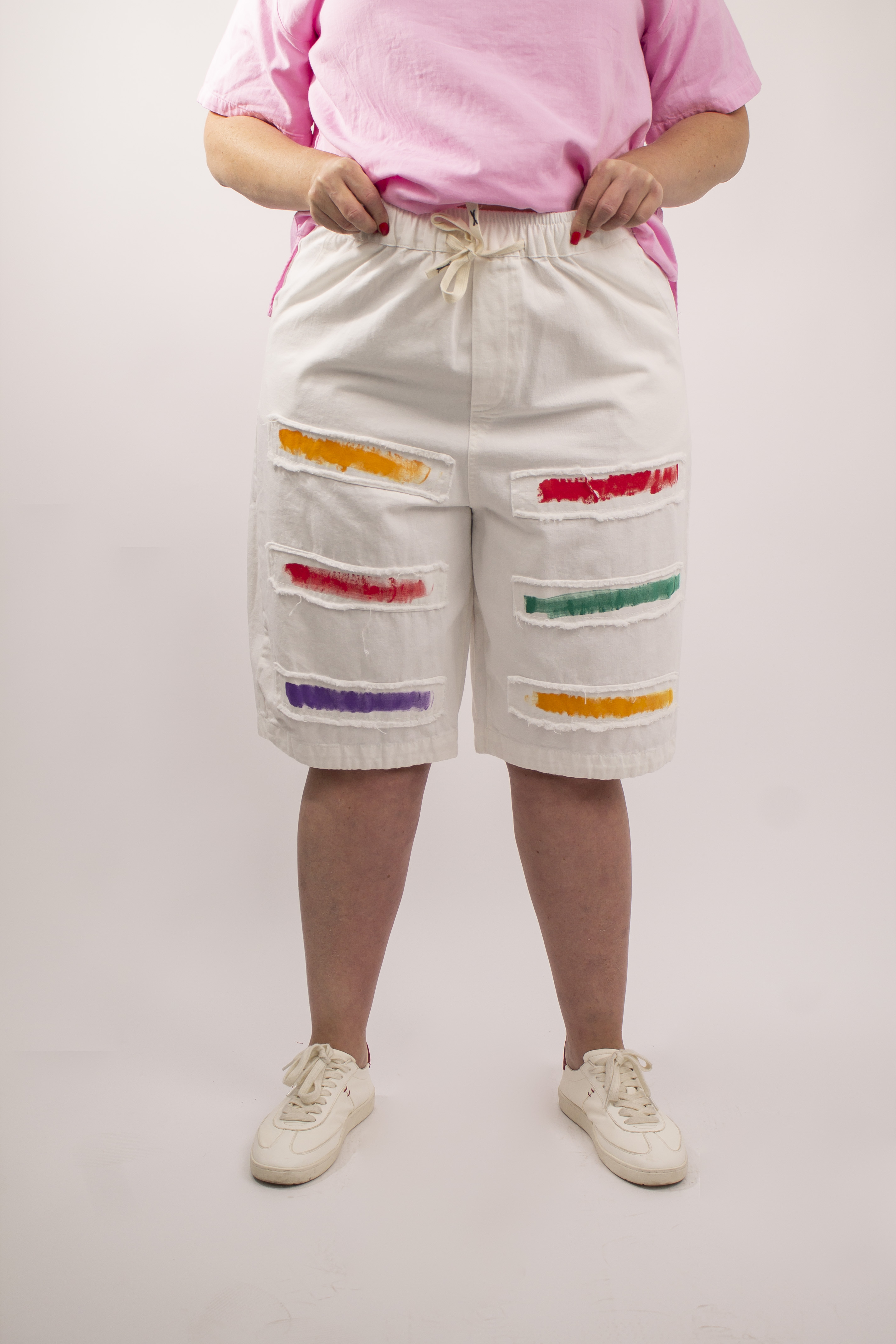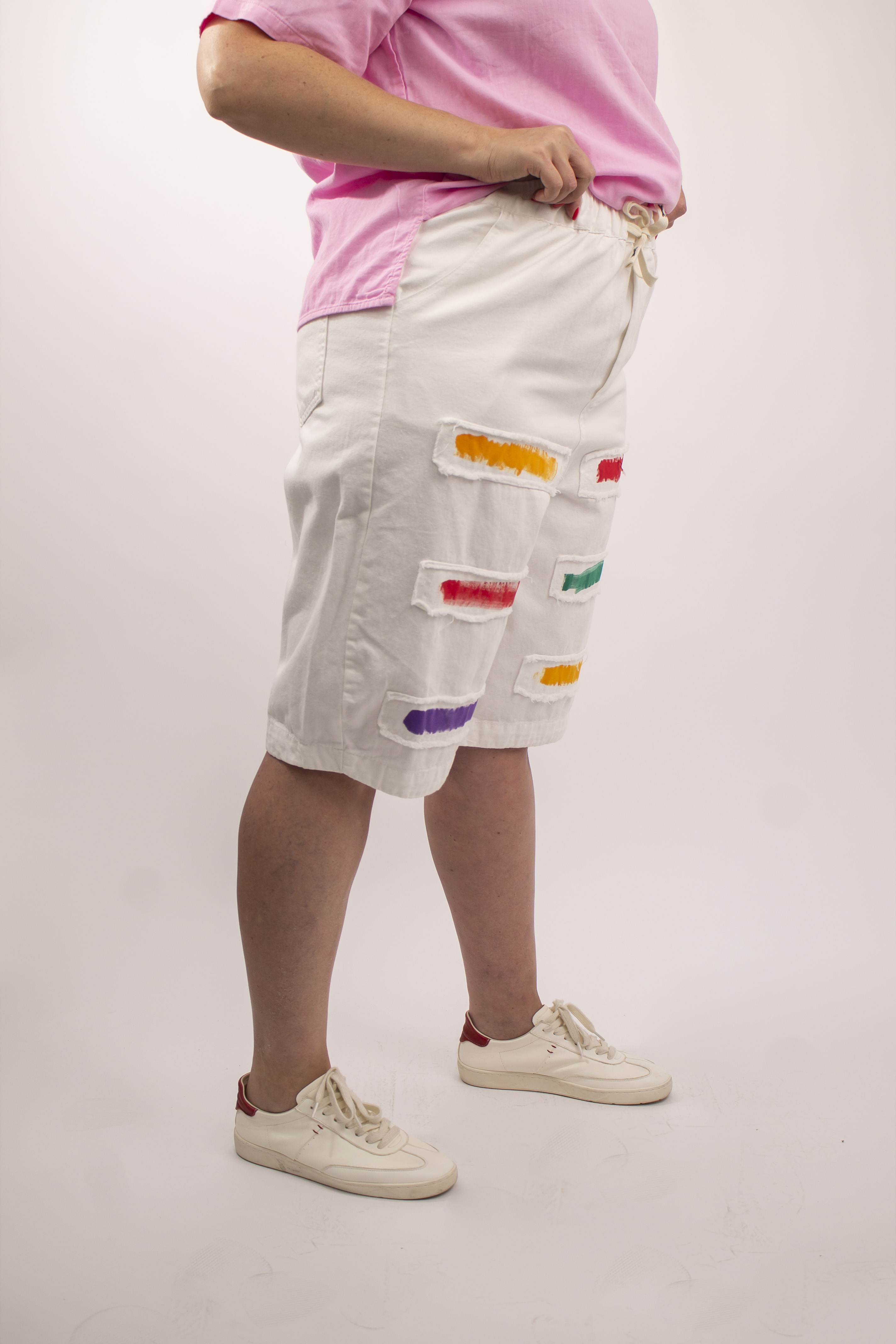 Особый шарм и индивидуальность придают бриджам декоративные цветные мазки краски на лицевой стороне. Этот оригинальный дизайн добавит ярких акцентов в ваш образ и подчеркнет вашу креативность.