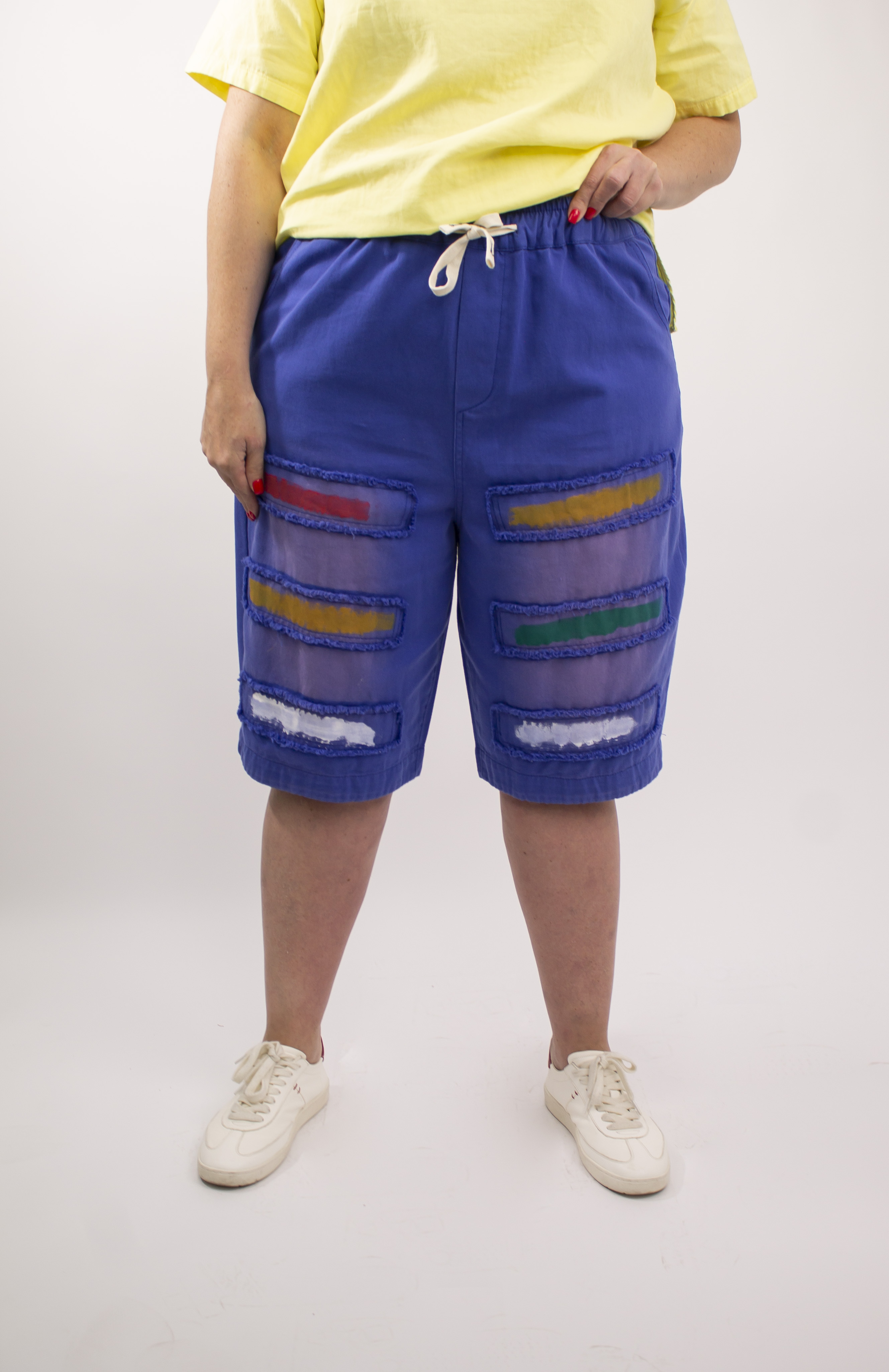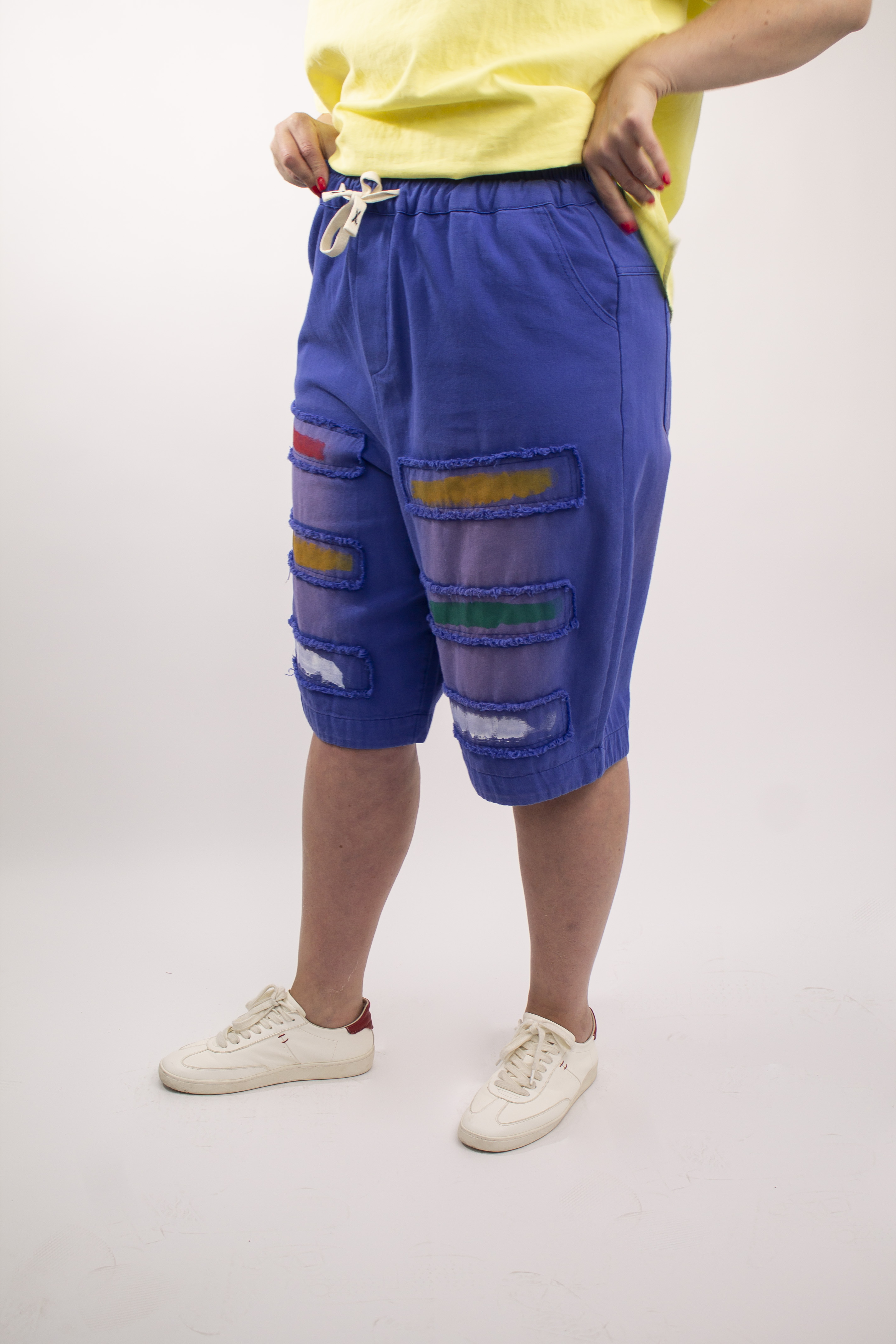 Особый шарм и индивидуальность придают бриджам декоративные цветные мазки краски на лицевой стороне. Этот оригинальный дизайн добавит ярких акцентов в ваш образ и подчеркнет вашу креативность.